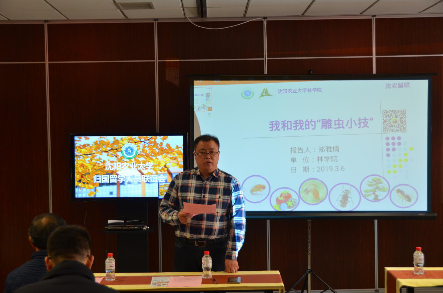 【转校党委统战部讯】3月6日,校留学人员联谊会2019年第二次“午间学术沙龙”活动在图书馆210会议室举行。林学院青年教师郑雅楠副教授以《我和我的“雕虫小技”》为题作报告。林学院王玉成教授主持沙龙活动。