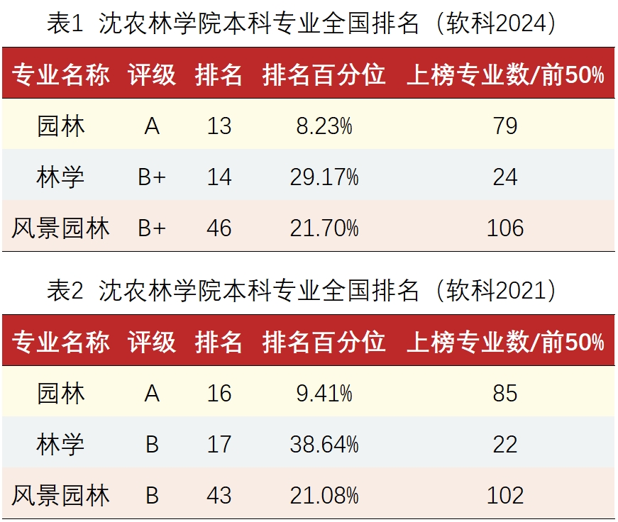 软科中国大学专业排名是迄今为止覆盖专业数量最多、参评专业规模最大的中国大学本科专业排名。该排名自2021年首次发布以来,我院3个本科专业连续4年排名全国前列,且都有所提升:园林专业从16名上升至13名,林学专业从17名上升至14名,林学、风景园林两个专业评级从B级上升为B+级。