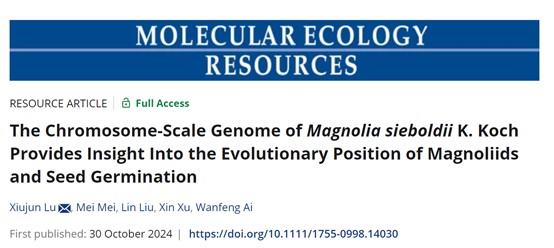 近日,Molecular Ecology Resources在线发表了KY.COM陆秀君教授团队题为“The Chromosome-Scale Genome of Magnolia sieboldii K. Koch Provides Insight Into the Evolutionary Position of Magnoliids and Seed Germination ”的研究论文,报道了天女木兰染色体水平参考基因组,验证了木兰科植物的进化地位,发现木兰科植物起源于真双子叶植物和单子叶植物分化之前,RNA-seq分析鉴定了控制种子休眠和萌发的关键基因及途径,揭示了FAR1(FAR-RED IMPAIRED RESPONSE 1)基因家族不同成员参与种子萌发的复杂过程。