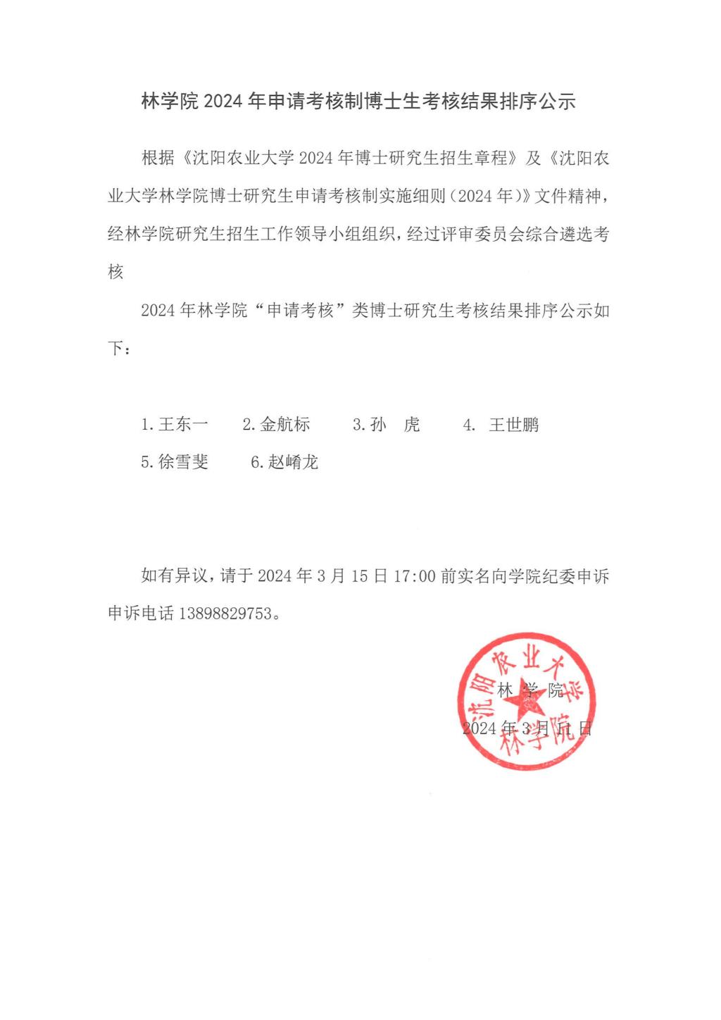 林学院2025级“直接攻博”类研究生申请人排序公示