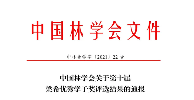 日前,中国林学会发布关于第十届梁希优秀学子奖评学结果的通报,KY.COM2018级林木遗传育种专业秦柏婷同学获评梁希优秀学子奖。