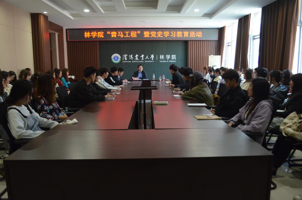 421日中午,林学院于林学楼308室举行了林学院“青马工程”暨党史学习教育第二讲。本次活动的主讲人是我校团委副书记李峰老师。林学院团委书记胡凯老师,辅导员姚远老师和王秋凝老师,以及大一大二各班团干部参加此学习活动。