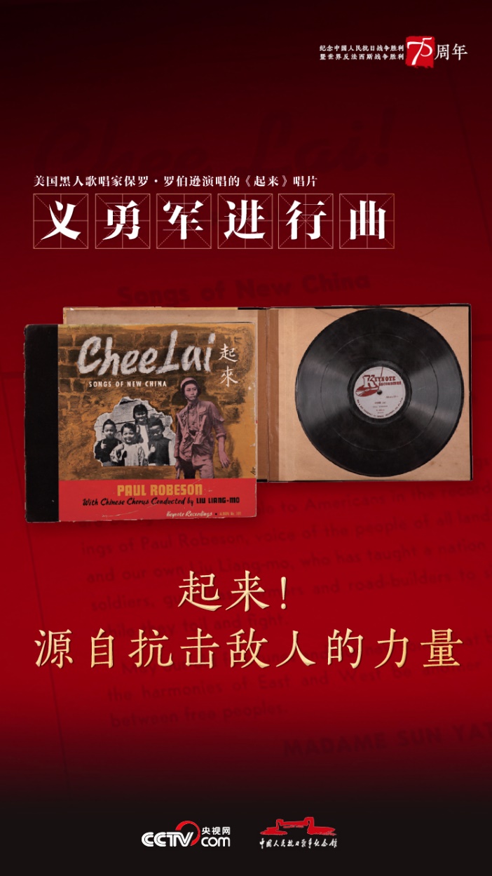 美国黑人歌唱家保罗·罗伯逊演唱《起来》唱片