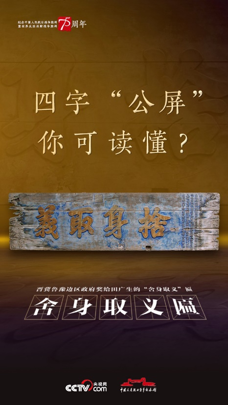 2020年9月3日,我们迎来纪念中国人民抗日战争胜利暨世界反法西斯战争胜利75周年。忆往昔,那是一段不可忘却的历史;展未来,那将是一段永不会被尘封的记忆。它刻在漫漫历史长卷中,它刻在每一个中国人的心里。在中国人民抗日战争纪念馆中,它还有着更具象的表达,更细节的“呼吸”。铭记历史,是为了启迪未来。值此周年纪念之际,央视网和中国人民抗日战争纪念馆联合出品12张抗战文物纪念海报,让那些峥嵘岁月里的“微表情”带你走近实现中华民族伟大复兴中国梦的初心。