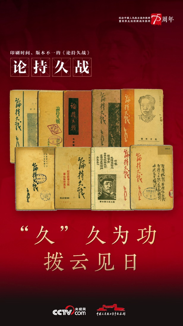 这几本书纸张早已发黄,印刷的时间、版本都不一样,但它们有一个共同的名字——《论持久战》。这是毛泽东主席在抗战时期发表的重要著作。在关键时刻,它拨开了人们思想上的迷雾,为抗战胜利指明了前进的方向。